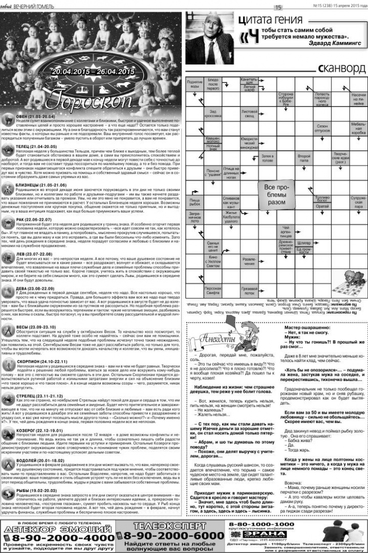 22.04.2015 "Вечерка" № 15 за 15.04.2015