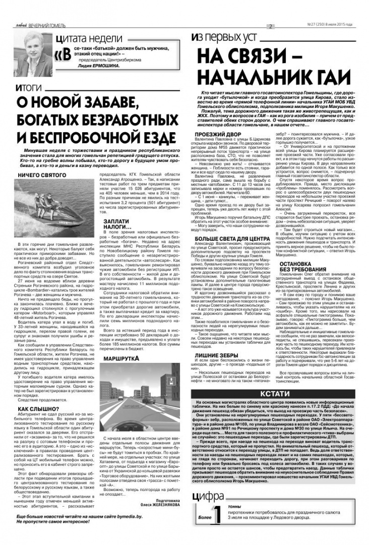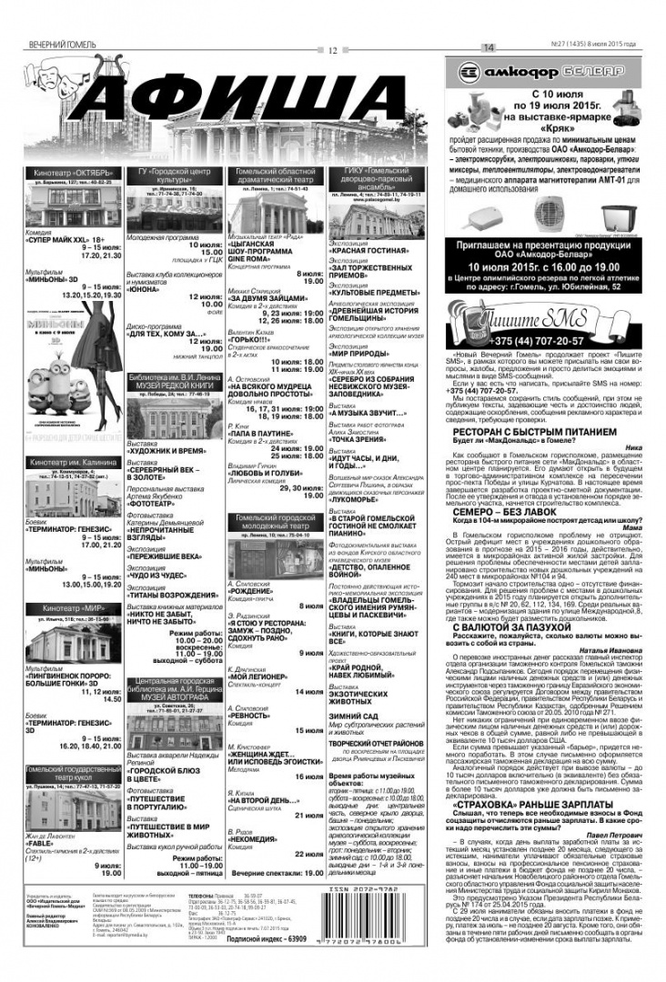 09.07.2015 "Вечерка" № 27 за 8.07.2015