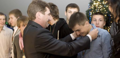 В торжественной обстановке футболистам вручили честно заработанные бронзовые медали, поздравили, подарили массу теплых слов, спели и станцевали.