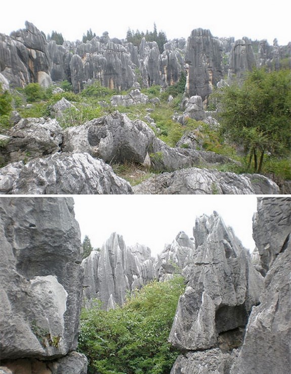 В китайском Каменном лесу Шилинь скалистые колонны на площади около 40 тысяч гектаров появились вследствие выщелачивания известняка. Считается, что этим камням больше 270 миллионов лет. Здесь есть еще и подземные каменистые образования в пещере, занимающей около 300 гектаров.